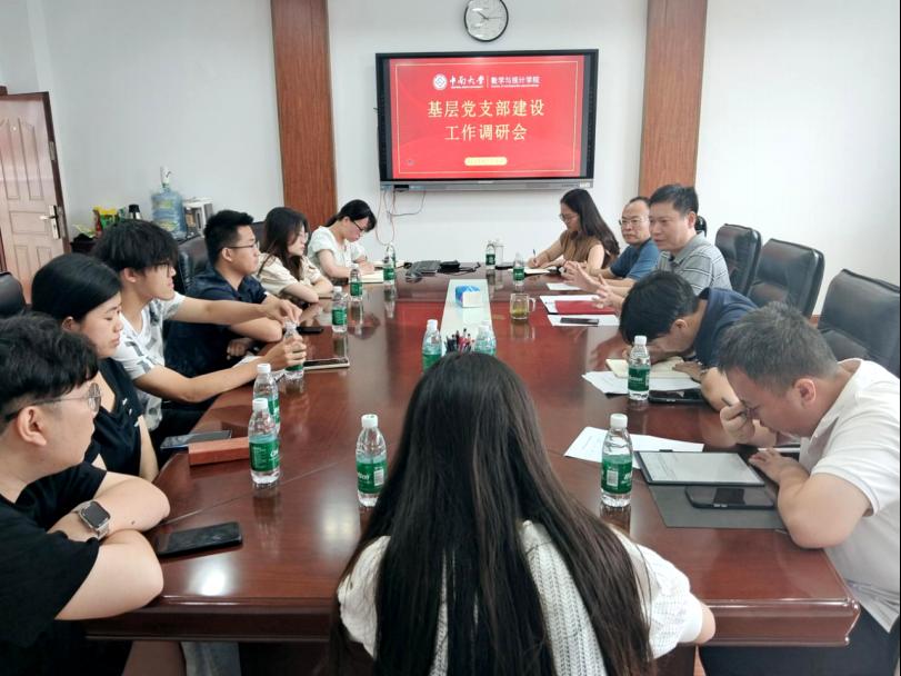 为更好发挥基层党组织战斗堡垒作用,进一步提升公司基层党支部标准化、规范化、品牌化建设。7月3日上午,伟德bv1946官网在数理楼362室开展基层党支部建设工作调研会。公司党委书记胡玉玺、公司党委副书记杨雪宾、研究生支部及博士支部书记等相关人员参与座谈交流。