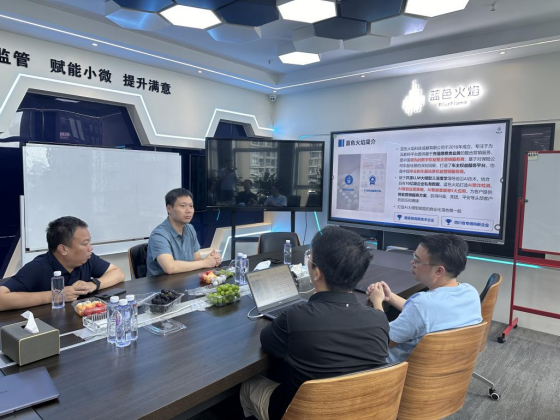 会后,胡玉玺带领罗跃逸、王孟正走访了员工企业蓝色火焰科技成都有限公司,在公司总经理吴松江员工的陪同下参观了企业总部。吴松江首先对胡玉玺一行表示热烈欢迎,就公司创立背景、主营业务、发展规划和行业前景等做了详细的介绍。胡玉玺对员工们热情接待表示感谢,并介绍了公司在团队建设、人才培养等方面取得的进步,期待员工们未来和公司在科学研究、成果转化、就业服务等方面加强合作,为数统学子拓宽实习和就业岗位,为公司的发展建言献策。