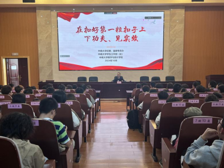杨书记要求青年学子要坚定理想信念,扣正“第一粒扣子”,培养正确的价值观念,促进自身全面发展,重点强调了老员工要严守纪律规矩,从谨守考试诚信,远离信贷陷阱,恪守学术道德,规范举止言行,遵守法律法规五个方面展开,告诫同学们“勿以恶小而为之,勿以善小而不为”。杨书记还通过公司侯振挺、刘路教授等专心求学、潜心科研的优秀事例,勉励同学们要厚植爱国情怀,践行使命担当,矢志青春奋斗,勇于担当奋斗。全体同学要坚持以好奇为导、以学习为本、以兴趣为基、以实干为要,不断发展自我,练就过硬本领,报效伟大祖国。
