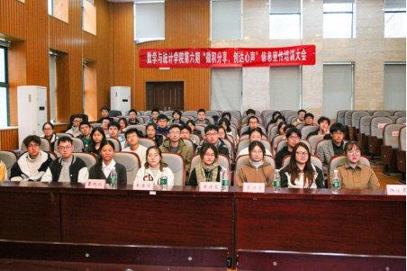 阐述未来规划,解锁推送密码。数统院团委员工会宣传部部长曹悦欣和副部长粟宇扬依次发言。部长曹悦欣对部门职能及分工协作、班风学风建设宣传评比规则进行了详细介绍,并在推送制作上,对同学们给予指导。副部长粟宇扬则强调了新闻稿写作中易忽略的错误,对此展开讲解。