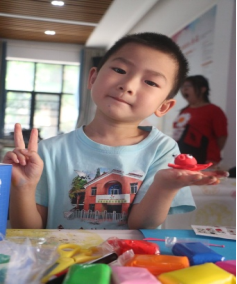 粘土画制作环节同样趣味十足。在志愿者的引导下,五颜六色的粘土在孩子们手中变换形态,化作一幅幅充满童趣的劳动场景。孩子们沉浸其中,小手灵活地揉捏、塑形,欢声笑语回荡在整个活动现场。