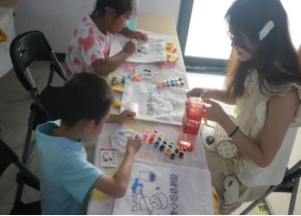 知识问答结束后,手工制作环节成为了孩子们展现创意的舞台。洁白的帆布袋上,印着工人、农民等“劳动最光荣” 主题的卡通绘图。孩子们手持画笔,认真地为图案上色。志愿者们穿梭其中,耐心指导。很快,一个个色彩斑斓的劳动主题帆布袋诞生,孩子们脸上洋溢着自豪的笑容。