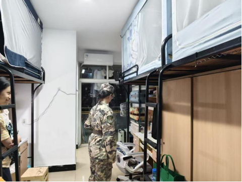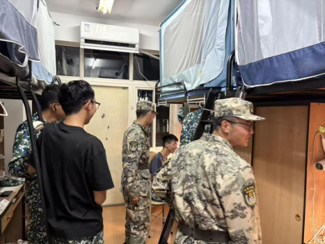 检查过程中,教官们详细讲解并演示了内务整理标准,从被褥叠放、桌面整理到物品定位,一一细致指导。同学们认真聆听、积极动手,迅速将宿舍整理得井然有序。被褥棱角分明,书本排列整齐,暖壶、扫帚等物品定点摆放,整个宿舍呈现出整洁规范的“样板间”风貌。