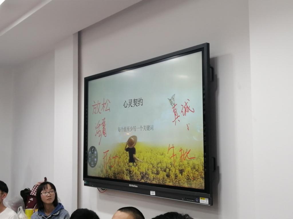 接下来,同学们被分成4组,和王老师一起制定了这次团体辅导的心灵契约:放松、活着、真诚、开心。