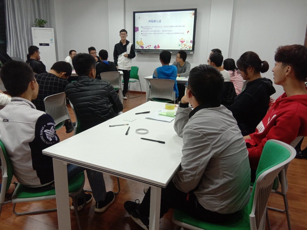 为了促进同学之间的相互了解,让同学们更好的适应老员工活,10月31日晚上18:00,数学物理类1901班于数理楼357“心晴屋”成长辅导室开展了团体辅导。16级辅导员薛兴悦老师主持了此次团体辅导。