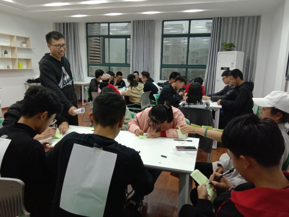 之后是答疑环节,王老师让同学们在便利贴上写下自己开学以来所遇到的困难,他在这些问题中随机抽取,并就抽取到的问题和同学们进行深入的探讨。经过王老师的解答,同学们都受益匪浅,他们明白了如何协调学习和工作、如何面对学习上的困难和如何支配生活费等,知道了如何使老员工活变得更加精彩。