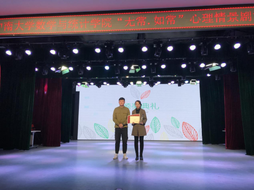 围绕“无常,如常”这一主题,各班剧组都带来了意义深刻、精彩纷呈的演出。从新生如何融入公司,到老员工如何克服创业路途中的困难,各班的选题都紧紧围绕着大赛主旨;不论是友情、爱情还是亲情,各种美好真挚的情感在大赛中都有所体现;小到日常矛盾的处理,大到对抑郁症患者的关怀,每一个角度都体现出数统院学子强烈的社会责任感和浓浓的人文关怀。大赛中还穿插了许多趣味小游戏。小游戏既让参与者乐在其中,也让台下的观众笑个不停,使现场的气氛更加活跃。在工作人员和剧组人员的共同努力下,大赛圆满结束。最终,研究生剧组凭借优质的剧本和精湛的演技折桂,2004、2007班剧组获得二等奖,2008、2002及2001班剧组获得三等奖。