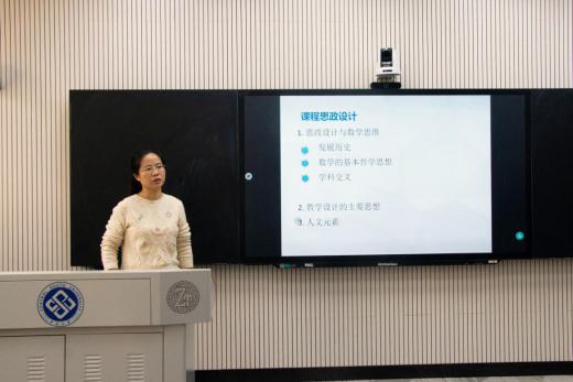 刘圣军、方秋莲、唐美兰、唐立、胡志和陈和柏为负责人的六个团队进行新增项目申报答辩。刘圣军老师畅谈了在课堂思政建设中的案例,引用“差之毫厘,谬以千里”来说明数值计算的误差。方秋莲老师展示了其所做的统计学课程内容体系及德融情况表,以表中的动态数列分析教学内容为例,用不同数据类型数据进行类比等方式教学,告诉员工要增强意识、坚定自信。陈和柏老师以常微分方程中的定义、公式、结论为基础案例,挖掘了其中蕴含的哲学思想,以便于员工弄清知识网络内涵,培养员工的辩证唯物主义观。十位老师逐一汇报,内涵丰富,精彩纷呈。