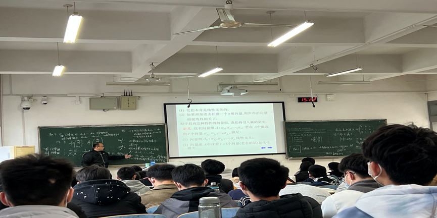为了进一步提升青年教师的教学能力,2022年3月24日下午五六节,高等数学教学研究中心组织了《线性代数》课程课堂教学公开课活动,主讲教师秦栋栋副教授,地点新校区C座105。公司理科督导组王小玲教授、罗益民教授、周建普教授、周英告教授及数统院教学督导张鸿雁教授、李俊平教授、任叶庆副教授等和高数中心全体无课教师、公司部分青年教师,共计23位教师参加了此次公开课活动。