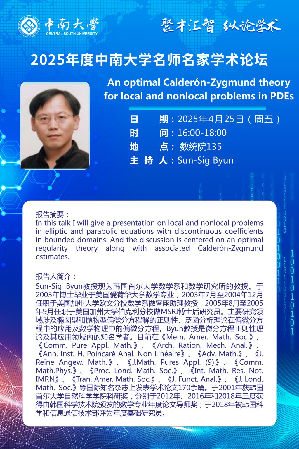 2025年度bv伟德国际1946名师名家学术论坛 Sun-Sig Byun 教授学术报告